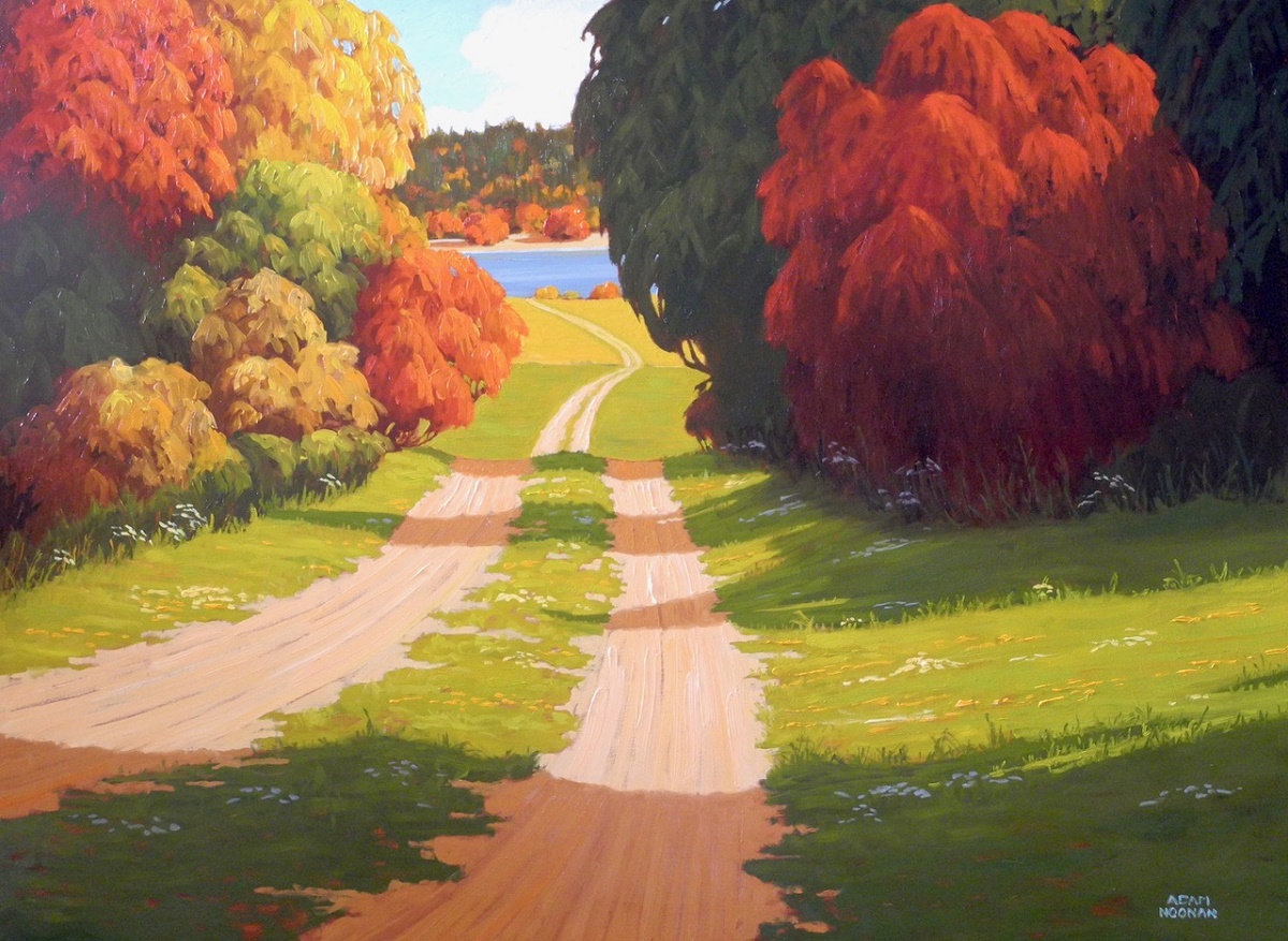Adam Noonan is revered for his rich oil paintings and signature style of buildings and landscapes often including a path leading to somewhere curious. He uses a distinctive colour palette of oranges, reds, and golds, and his extraordinary use of shadow and light adds vibrancy to his paintings.
