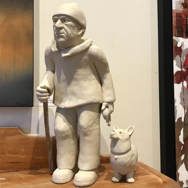 Linda Mercer is a unique multidisciplinary artist (painter, ceramicist, and sculptor). She expresses playful, good-natured, and often humorous aspects of her new urban world in her work such as capturing the joy of people walking their dogs.