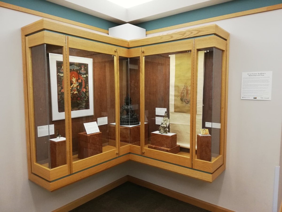 Our micro-exhibition, titled Art as Practice: Buddhism’s Relationship with Place combines historical Buddhist art from Asia with contemporary Buddhist-inspired art from Canada’s West Coast. It highlights the relationship between place and Buddhist expressions in art, and illustrates that the creation of Buddhist art is not just artistic expression, but also a form of religious practice.