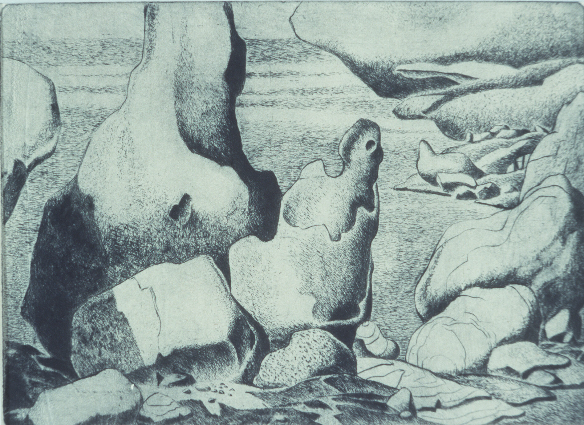 Gordon A. Smith (Canadian, 1919-2020) | Rock Forms | not dated | etching and black ink on paper | 16.8 x 22.2 cm. | Women’s Committee Cultural Fund (1979.334.003)