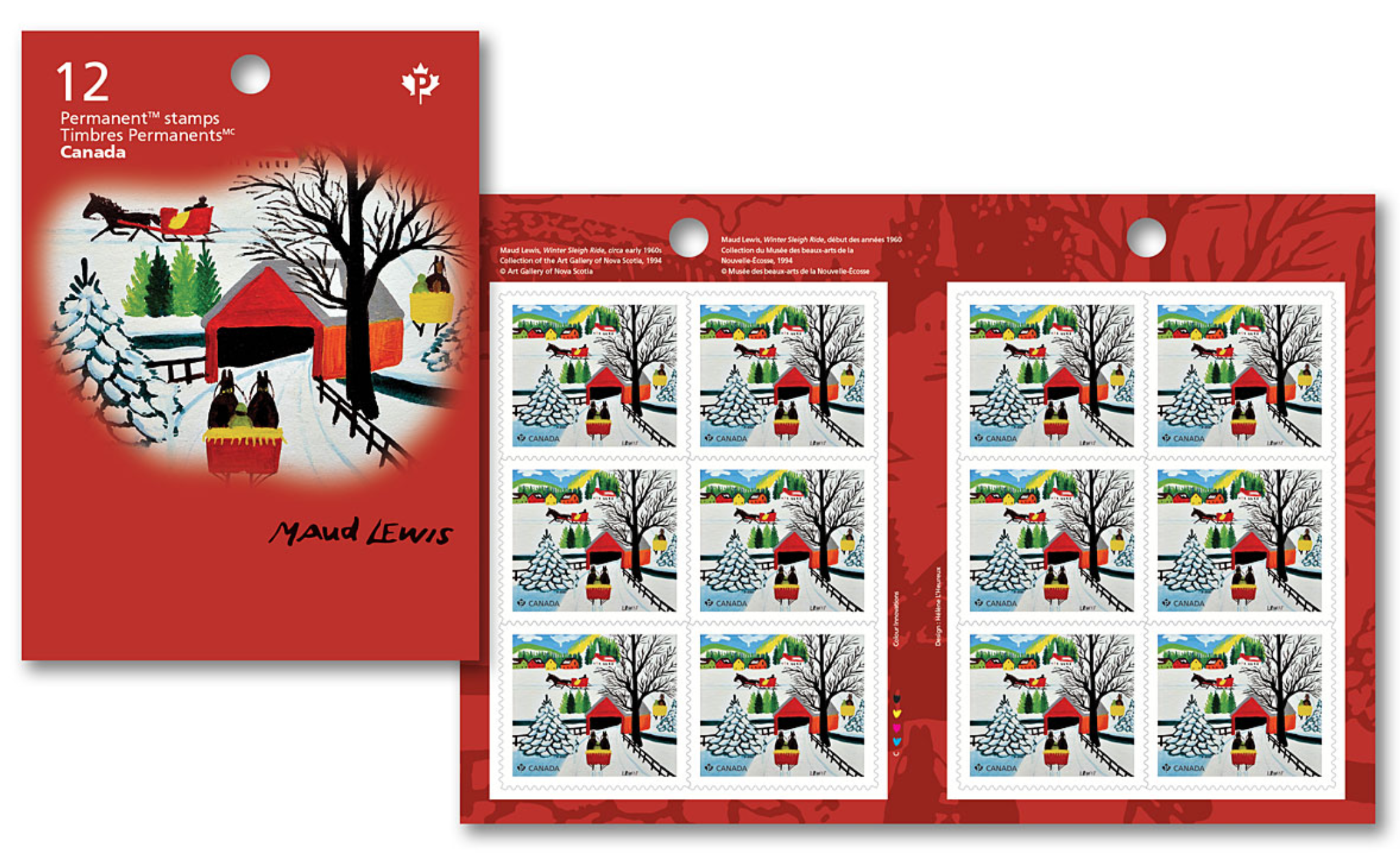 Apart from the preservation of their home, initiated by a group of concerned citizens of Digby, Maud Lewis has been recognized posthumously on numerous occasions, in commemorative honours, in books, documentaries, theatre and film. Most recently, she was the subject of the award-winning film “Maudie” (2016) starring Sally Hawkins and Ethan Hawke. For Christmas 2020, Canada Post has released special commemorative stamps featuring the work of Maud Lewis.