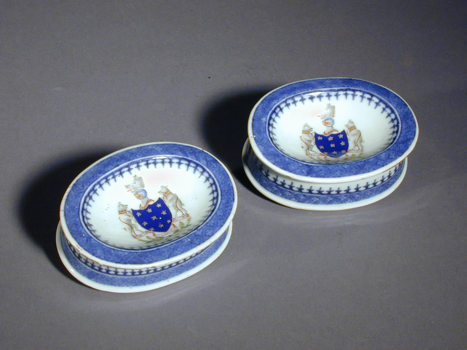 The popularity of Chinoiserie emerged in the late 17th and early 18th centuries, attributed to the European fascination with the exotic East. The imagined mysticism of China gave birth to an idealized world of idyllic landscapes and a life of luxury and relaxation. Few Europeans had actually travelled to China and therefore most did not know the reality. The Chinoiserie phenomenon coincided with and complemented the rise of the rococo style in Europe which is characterized by ornate embellishments, theatrical architectural design and lots of gold. English, Dutch and French trade with China during this time was also flourishing and specially commissioned designs were regularly sent to China so that European objects could be made in Chinese style. Porcelain was highly coveted by the Europeans who valued the material for its delicate thinness paired with its strength and resistance to heat. Many porcelain items in European shapes – gravy boats, tea sets and oval platters among others – were specially ordered, as well as pieces painted with family crests, coats-of-arms and family mottoes. Many came back poorly written due to the Chinese craftsmen’s ignorance of the alphabet.