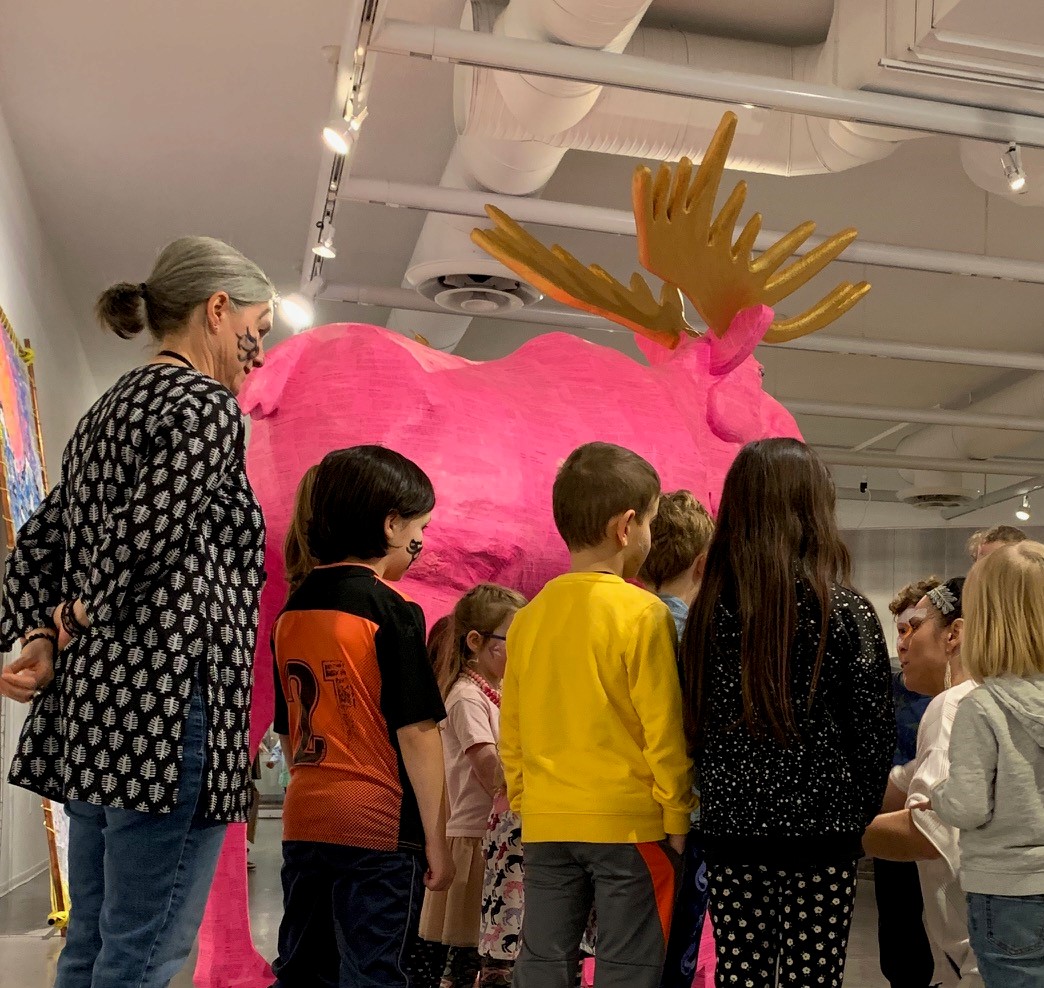 February’s Family Sunday was inspired by the exhibition To Talk To Others. Face painting was a major component of this month’s event, which was free to thanks to the Province of British Columbia in celebration of Family Day. With their faces painted as animals of the North, the young participants were led in two dance sessions by special guest, Monique Salez. Moving through the exhibition, participants took on the characteristics of the animals, exploring and feeling the space and care needed in order for the animals to thrive in their environment.
