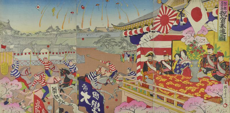 Unknown Artist | Emperor Observing Polo Match | not dated | woodcut, coloured inks | 36 × 71.6 cm | Purchased with funds from Judith Patt (2013.026.014 a-c)