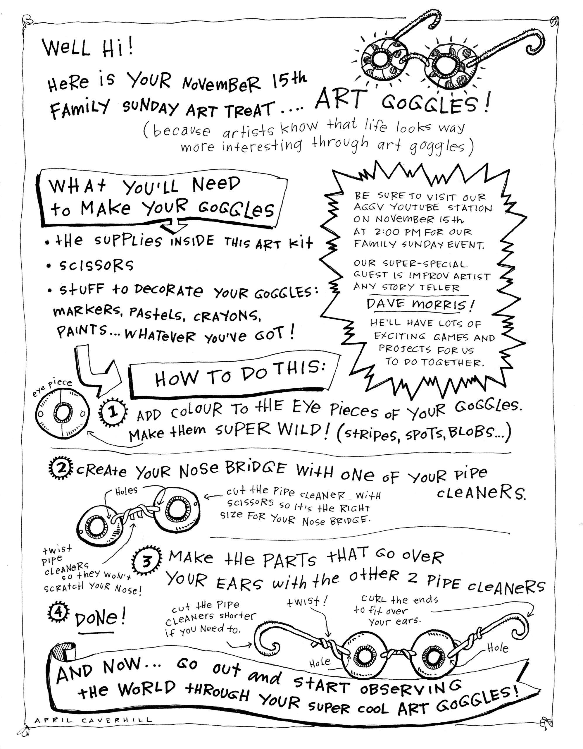 To all of our readers, a warm hello! My name is April Caverhill, and back in October, I took on the role of Family Sunday coordinator. It’s been a treat so far. Meeting with artists of all stripes, assisting them in bringing engaging online content to our Family Sunday community, is hugely uplifting. Knowing our virtual format makes Family Sunday accessible to an even wider audience than our in-person gatherings is an unexpected side benefit of our digital iteration. And yes, the time WILL come again when we can have our marvellous Family Sundays in person at the AGGV!