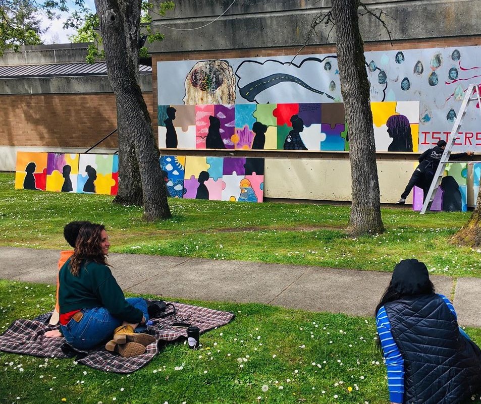 As part of the Art Gallery of Greater Victoria’s New Extreme program, the exterior wall of the Gallery (facing Moss Street) gets a new mural installed every spring. This year, the group called Melanin Magic from Cedar Hill Middle School created the mural “How We Fit Together”, mentored by artist Andrea Searle. This is a reflection of their journey through New Extreme…