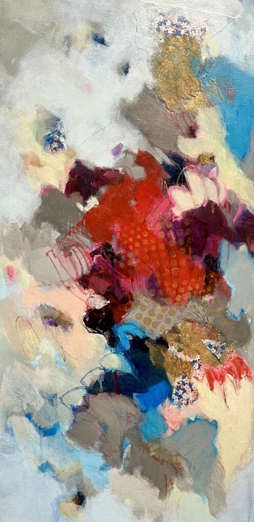 “As an abstract painter, I love conveying energy and emotion through different mediums, with acrylic paint being my favourite. My art often mirrors nature’s transformations, personal memories, and current events, using lines and shapes layered in a meditative process. Acrylics help me quickly build each layer and seamlessly move forward. I hope my paintings create a deep bond between my soul and the world, ultimately resonating with viewers.”