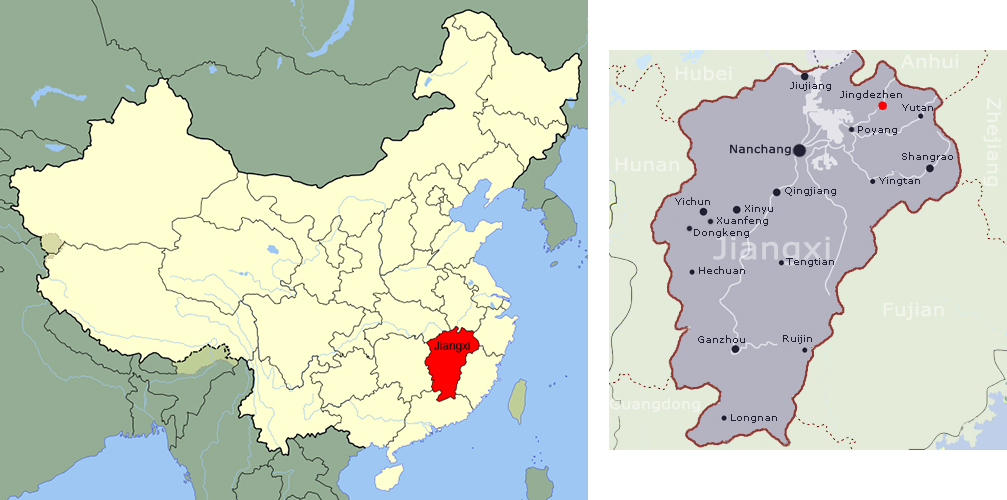 Jingdezhen in Jiangxi province is where Chinese blue and white porcelains have been manufactured since the Yuan dynasty (1279-1368). Production continues there today, giving it the moniker of the “Porcelain Capital” of the world.