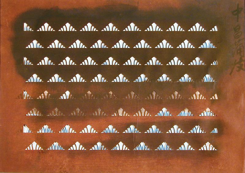 Ise Katagami is the traditional Japanese craft of making paper stencils for printing and dyeing on textile. Stencilling has been used in Japan since the 8th century and may have developed alongside the kimono. In Ise Katagami, sheets of washi paper are bonded together with glue made from persimmons, to form a strong flexible brown paper. Designs are cut from the paper and the stencils are used for resist dyeing. The craft has been designated an Important Intangible Cultural Property of Japan.