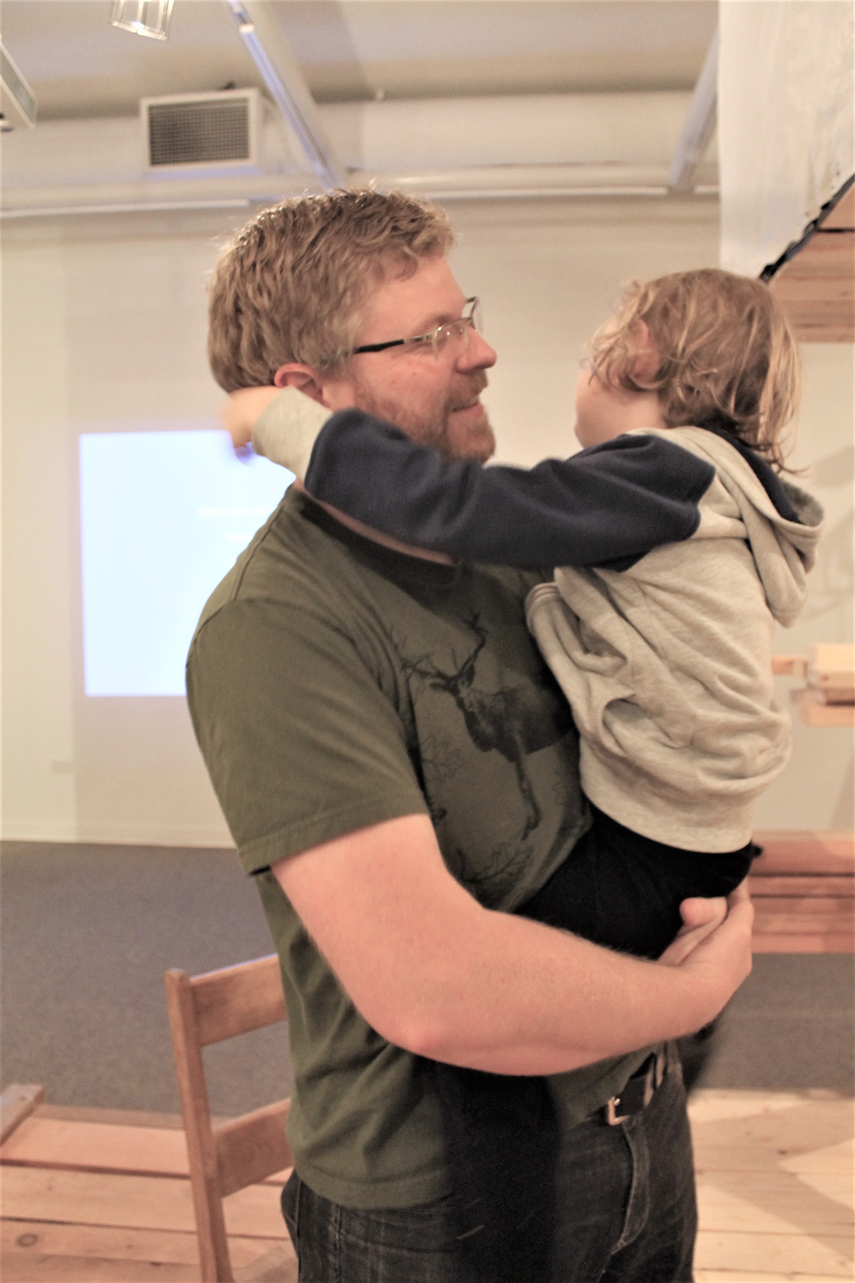 When asked earlier in the month about the safety of the installation, Cedric Bomford responded: “Everything we build is up to code for any anxious parents”. Good thing too, as participants were uninhibited while interacting with the piece and it was fascinating to watch the typically quiet Gallery space turn into a play area for families. The liberties that the children took with discovering the piece also prompted the adults to take a second look and discover something for themselves (like a hidden stash of empty cans and bottles inside the lower ‘shack’). It was inspiring to watch adults tapping into their inner child – especially the Bomfords who enjoyed revisiting their work in this capacity.