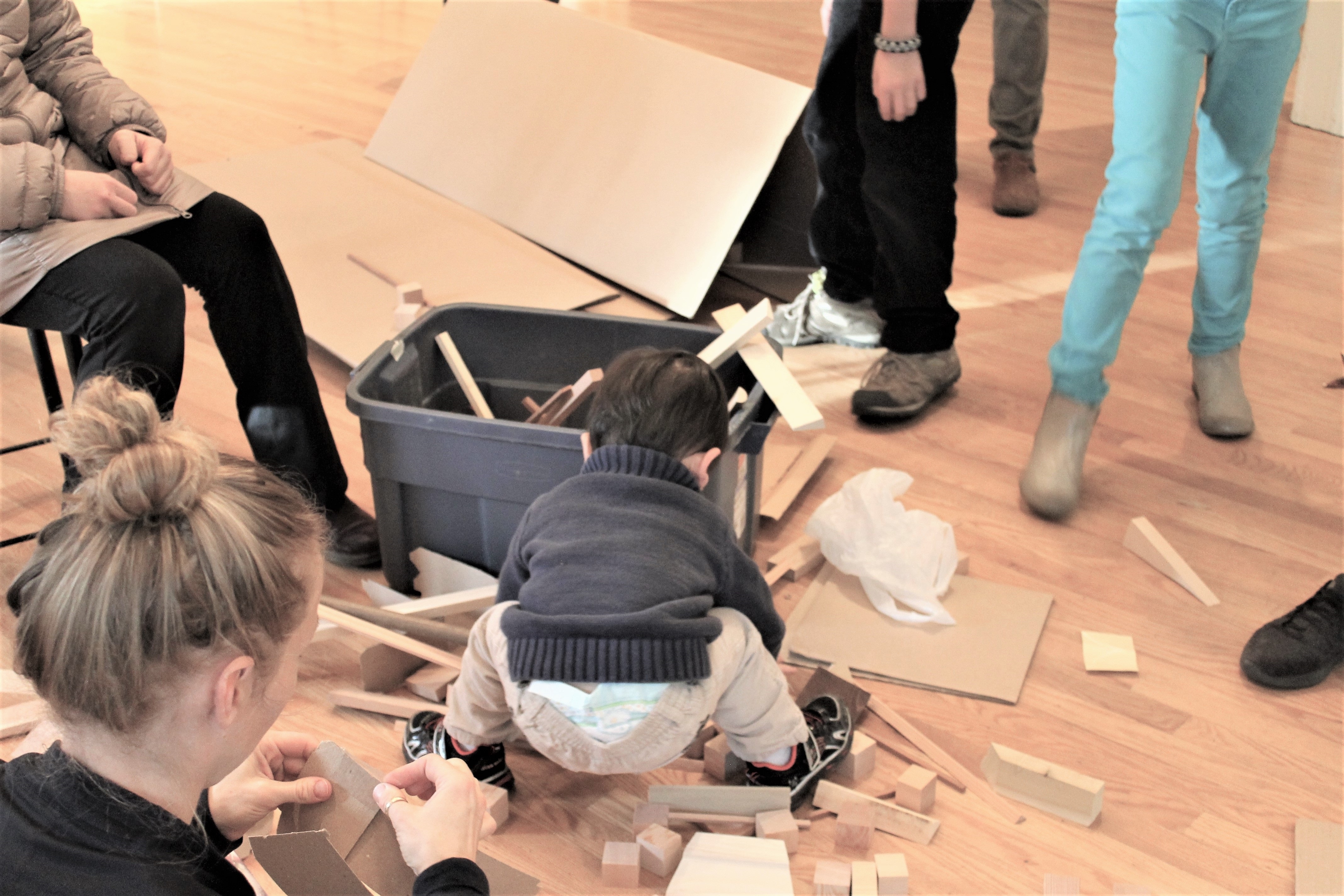 In conjunction with It’s in the Making exhibition, the Bomford family made a rare Gallery appearance with their children to celebrate their installation piece, The Best Laid Plans, and facilitate activities with participating families. The Best Laid Plans challenges ideas about space and structure, and was a huge success with the younger crowd who explored the interactive piece with delight.