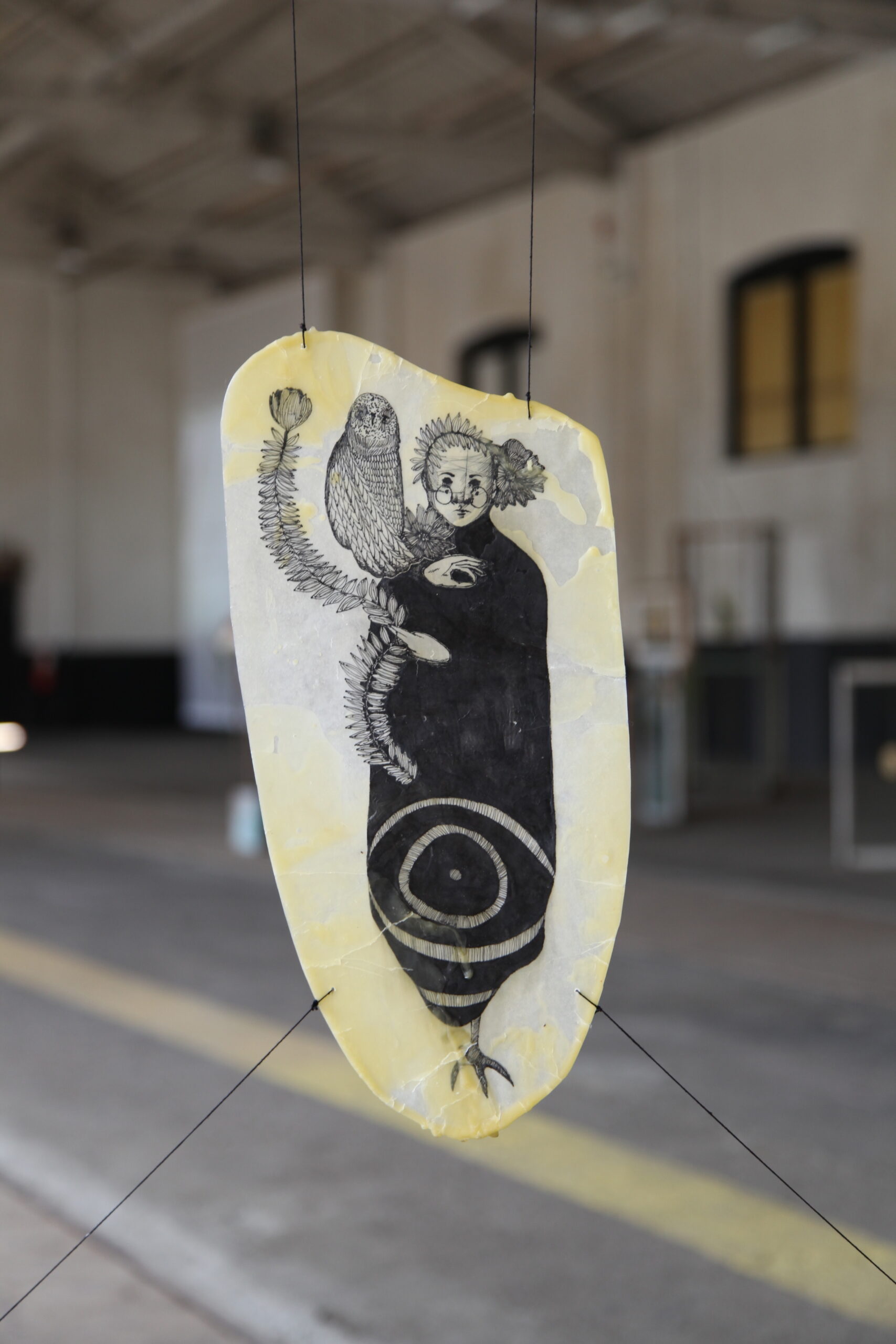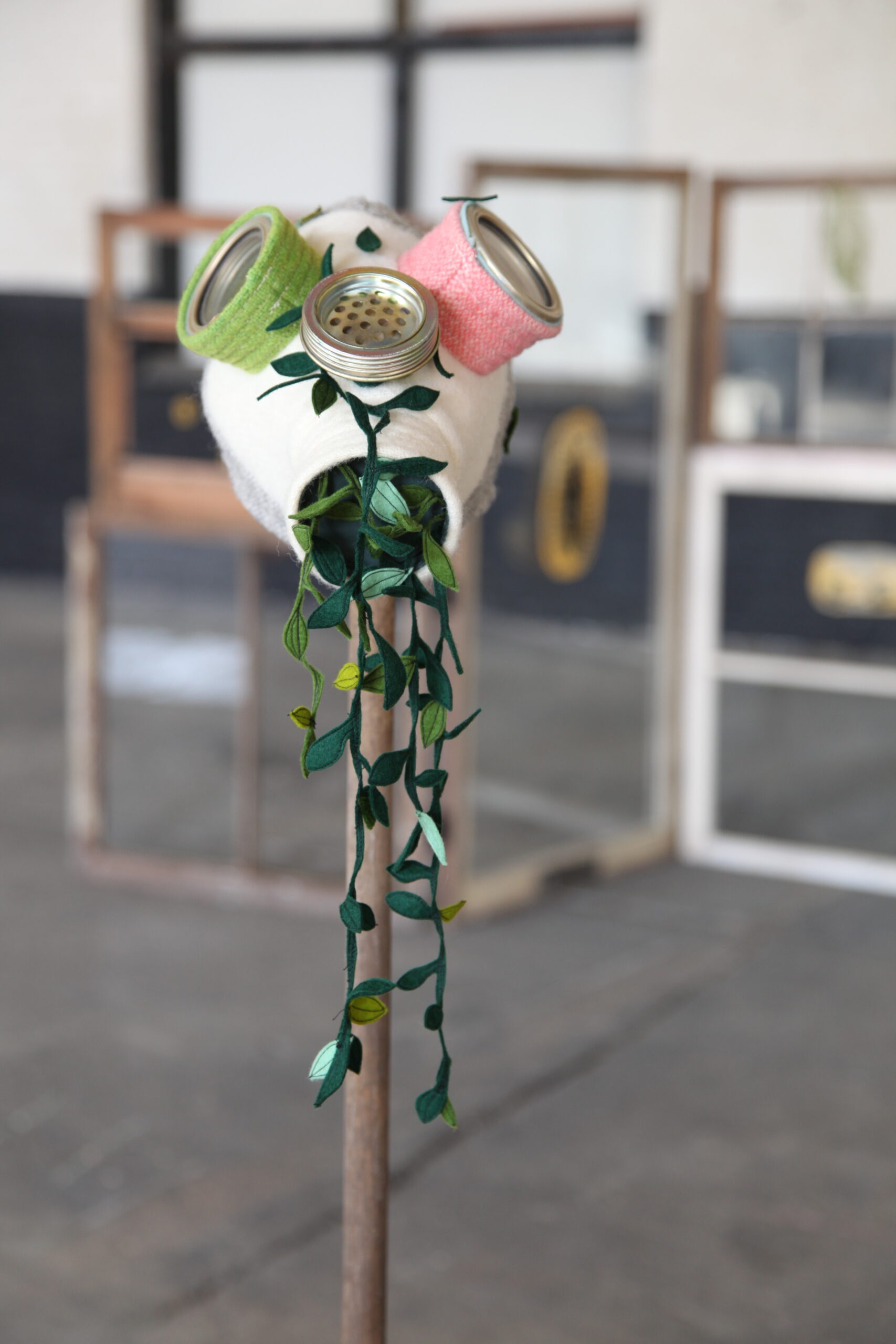All of these respective components of The Breathing Wall were inspired by the artists’ interest in the idea of the wall as a porous membrane that allows history—and all its contents—to move back and forth, in and out, thus creating connection between individuals, communities, and the environments and context containing them, across time and space. Each artist brought a body of personal work to the endeavour. Morey contributed Release, a series of sculptural works created from recycled wool blankets, deconstructed surplus gas masks, reclaimed wood, and botanical matter. Walker created a series of drawings in ink on paper, which is a central medium in her practice. The drawings were dipped in a layer of beeswax, a device that signifies ideas of preservation and the gradations of history as well as community, creativity, and, ultimately, life. While aesthetically distinct, the artists’ works are united in their reflection of the shifting strata of history that is implicit in their chosen site.