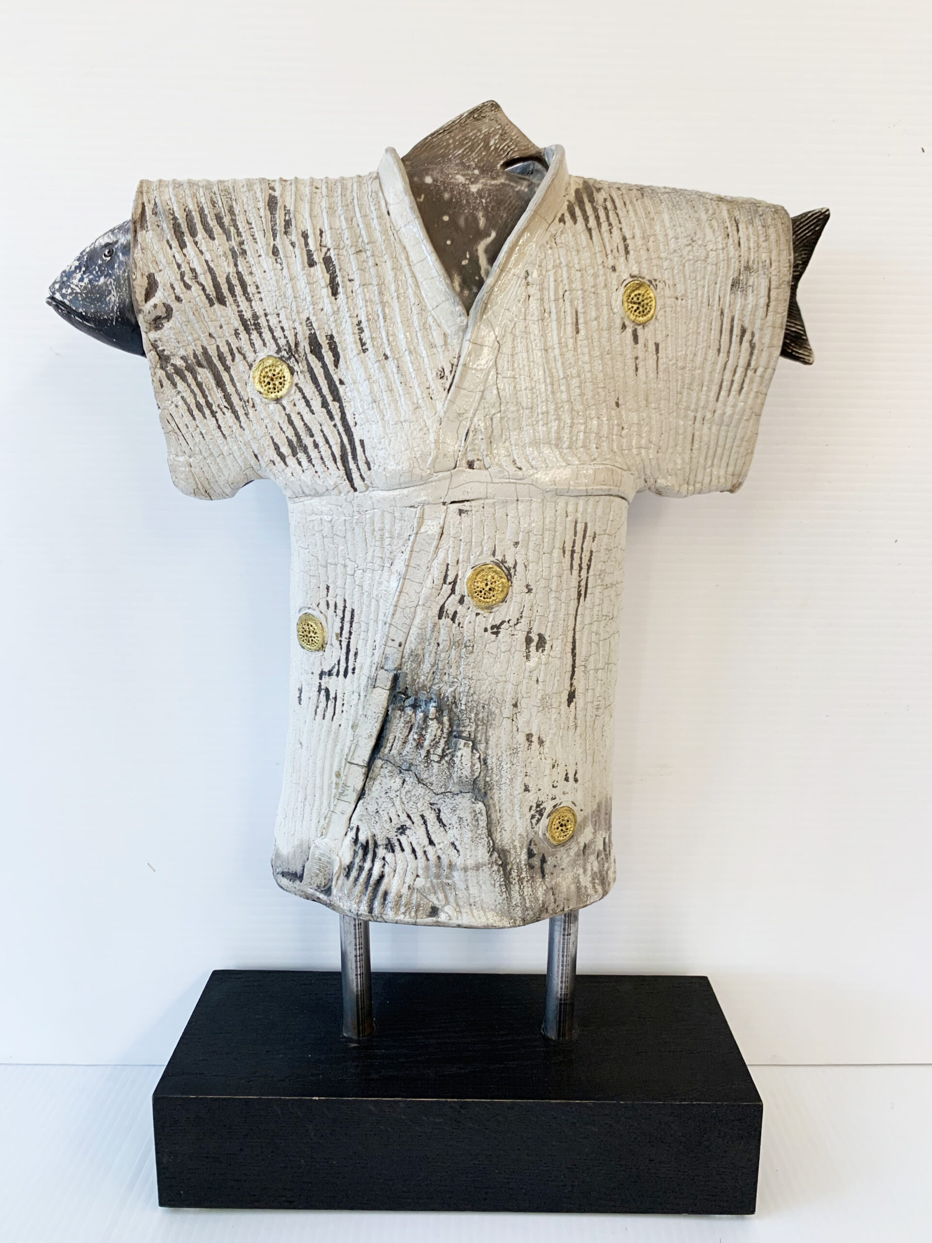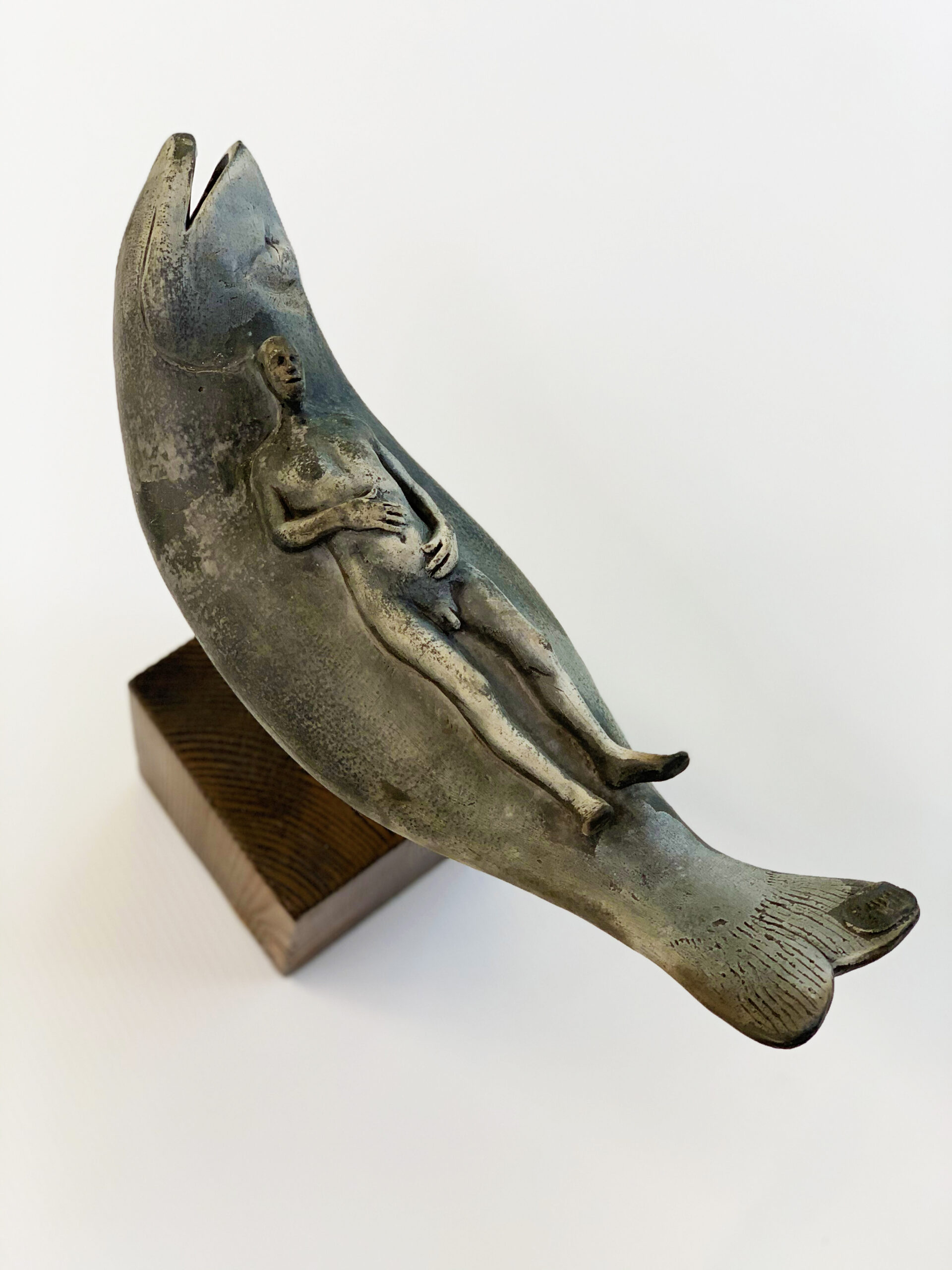 While there is no question that Leonard’s work is beautiful, its whimsical nature provokes the viewer to challenge what they are seeing and possibly ask deeper questions. Whether you are looking at a coy fish wearing a kimono, a man dreaming cozily on a fish, or a woman surfacing from the water, Leonard’s sculpture will without a doubt command attention in your home, as well as bring you joy.