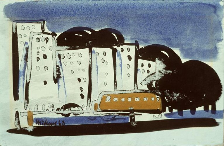 Feature image: Junichiro Sekino (Japanese, 1914-1988) | Bullet Train | not dated | woodcut | 31.5 x 29 cm | Gift of Carol Potter Peckham and American Friends of Canada (1997.046.007)