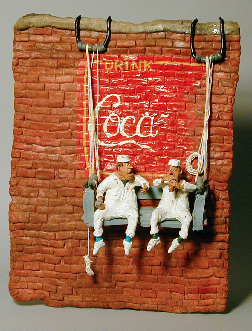 John McCuistion says about working with ceramics, “I’ve never had a problem coming up with ideas. From humor to protesting wars, any subject is fair game. I love the physicality of clay and the communal experience of working in the ceramic studio. Clay is rewarding and confounding, so it is always a challenge.”